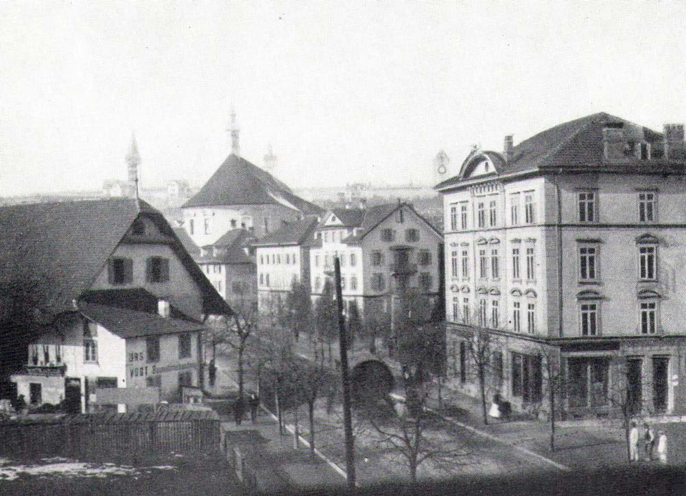 Bedeutend war der Vorgängerbau, ein elegant-schlichtes Biedermeierhaus aus der ersten Hälfte des 19. Jahrhunderts, das auch „Schiffhütte“ genannt wurde (obwohl sich die ursprüngliche Schiffhütte nicht hier, sondern an der Stelle des heutigen Luzerner Theaters befunden hatte).