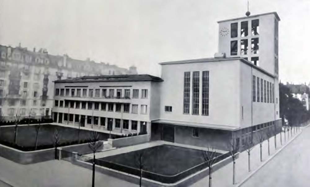 Die Lukaskirche nach der Bauvollendung im Jahr 1935: Sie ist ein prominentes Beispiel für den Baustil der frühen Moderne in Luzern. Mit der bevorstehenden Sanierung soll der Aussenraum auf seine ursprüngliche Schlichtheit reduziert werden. Damit sollen die Ruhe und Klarheit der Gesamtanlage wieder zur Geltung kommen.